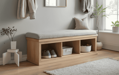 Eichenholz ist ideal für eine Garderobenbank wegen seiner Robustheit, Langlebigkeit und zeitlosen Ästhetik, besonders in stark frequentierten Bereichen wie dem Flur.